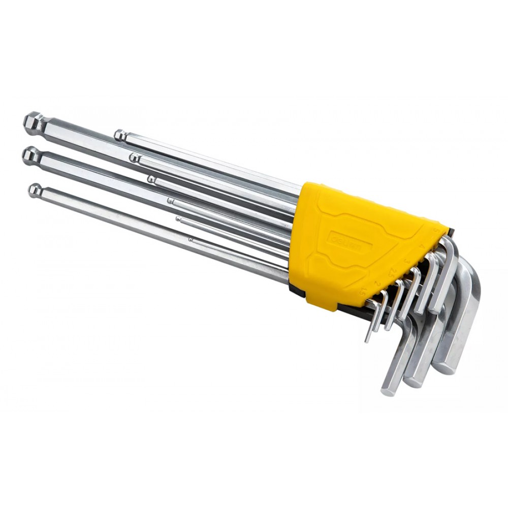 Σετ από την Deli που αποτελείται από 9 διαφορετικά εξάγωνα κλειδιά τύπου Allen με μπίλια και extra long βραχίονα.