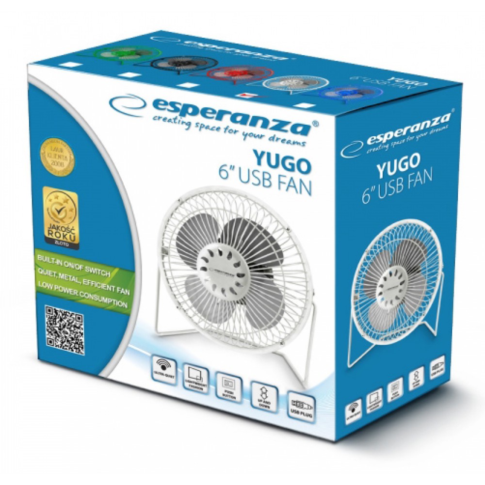 ESPERANZA Επιτραπέζιος ανεμιστήρας USB Yugo EA149W, 6", λευκό