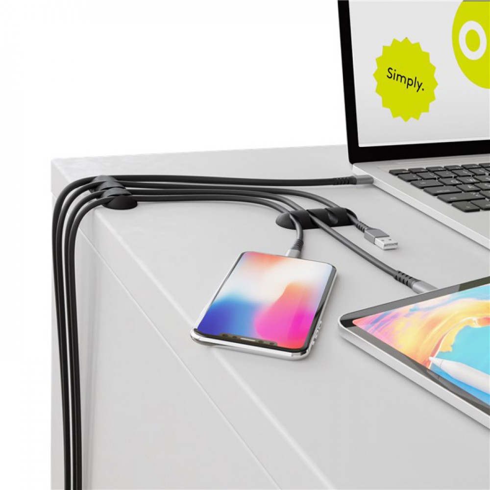 Οργανωτές καλωδίων σιλικόνης με θέση για 4 καλώδια με μέγιστη διάμετρο 6.2mm. Η επικόλληση τους μπορεί να γίνει σε ξύλινη, πέτρινη, γυάλινη, πλαστική και μεταλλική επιφάνεια με αυτοκόλλητο 3M, το οποίο δεν αφήνει υπολείμματα όταν αφαιρεθεί. Είναι κατάλληλοι για την εύκολη τακτοποίηση καλωδίων όπως USB ή τροφοδοσίας.
