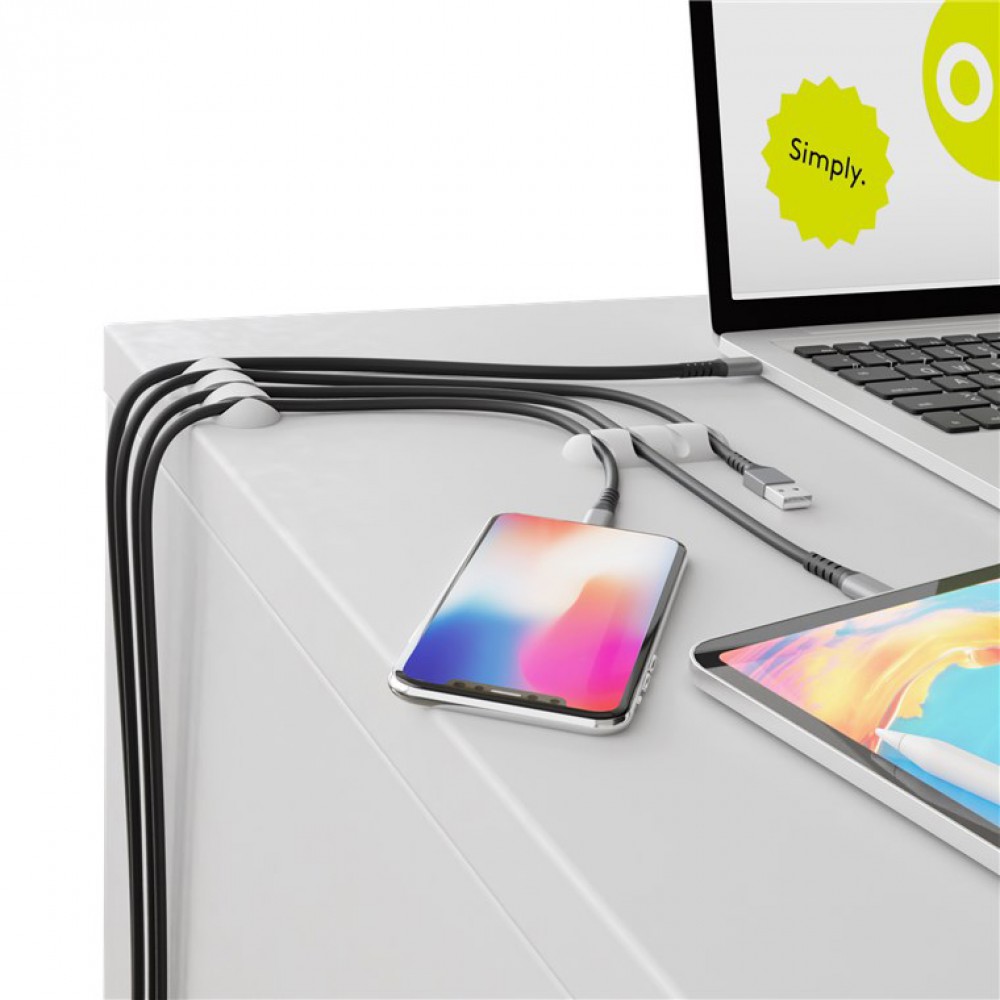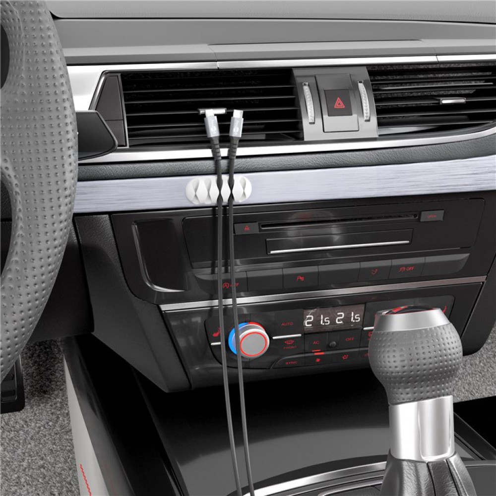 Οργανωτές καλωδίων σιλικόνης με θέση για 4 καλώδια με μέγιστη διάμετρο 6.2mm. Η επικόλληση τους μπορεί να γίνει σε ξύλινη, πέτρινη, γυάλινη, πλαστική και μεταλλική επιφάνεια με αυτοκόλλητο 3M, το οποίο δεν αφήνει υπολείμματα όταν αφαιρεθεί. Είναι κατάλληλοι για την εύκολη τακτοποίηση καλωδίων όπως USB ή τροφοδοσίας.