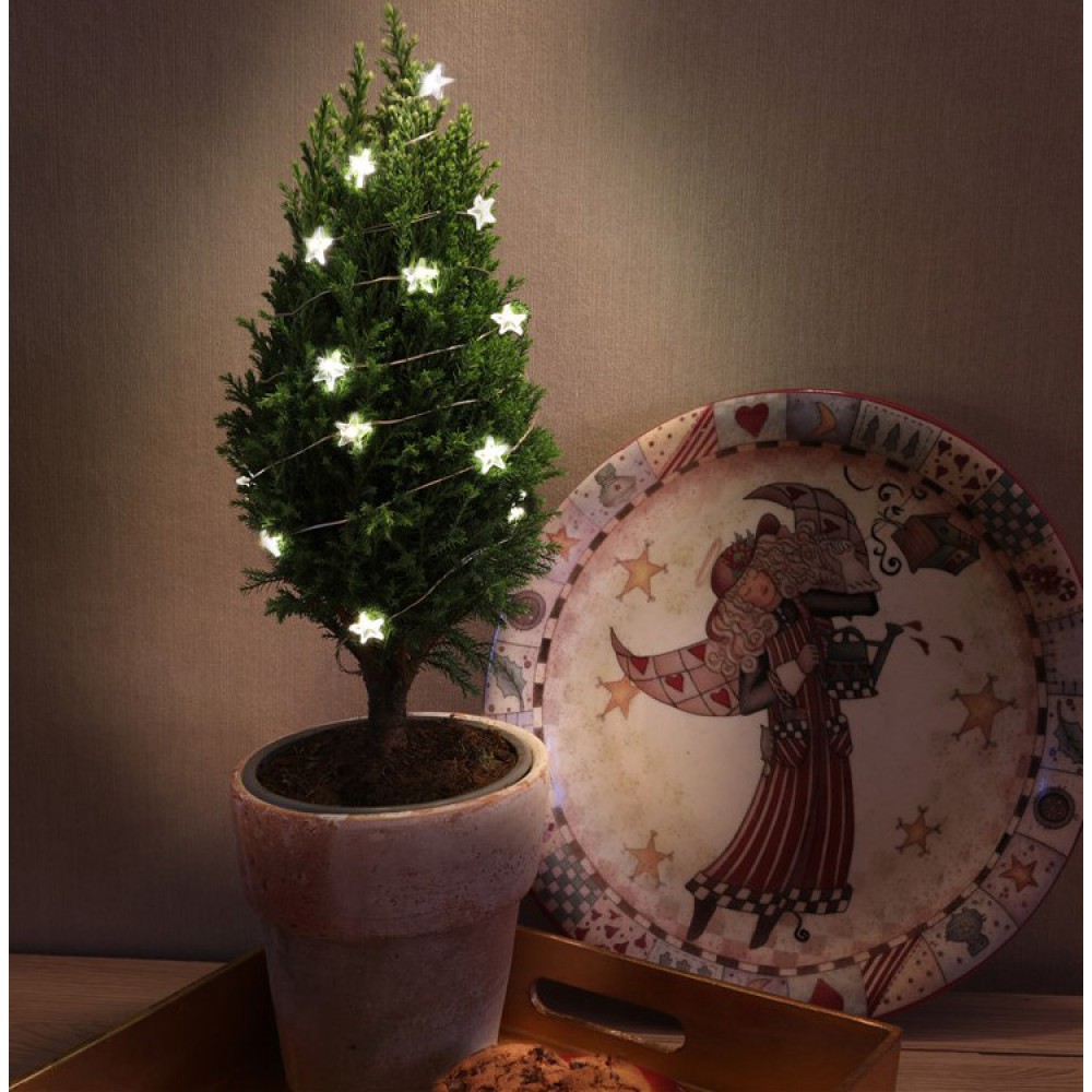 Λαμπάκια LED με διακοσμητικά αστέρια που συνδέονται με ένα διαφανές καλώδιο συνολικού μήκους 2.2 μέτρα. Είναι ιδανικά για την χριστουγεννιάτικη διακόσμηση σε οποιονδήποτε εσωτερικό χώρο.