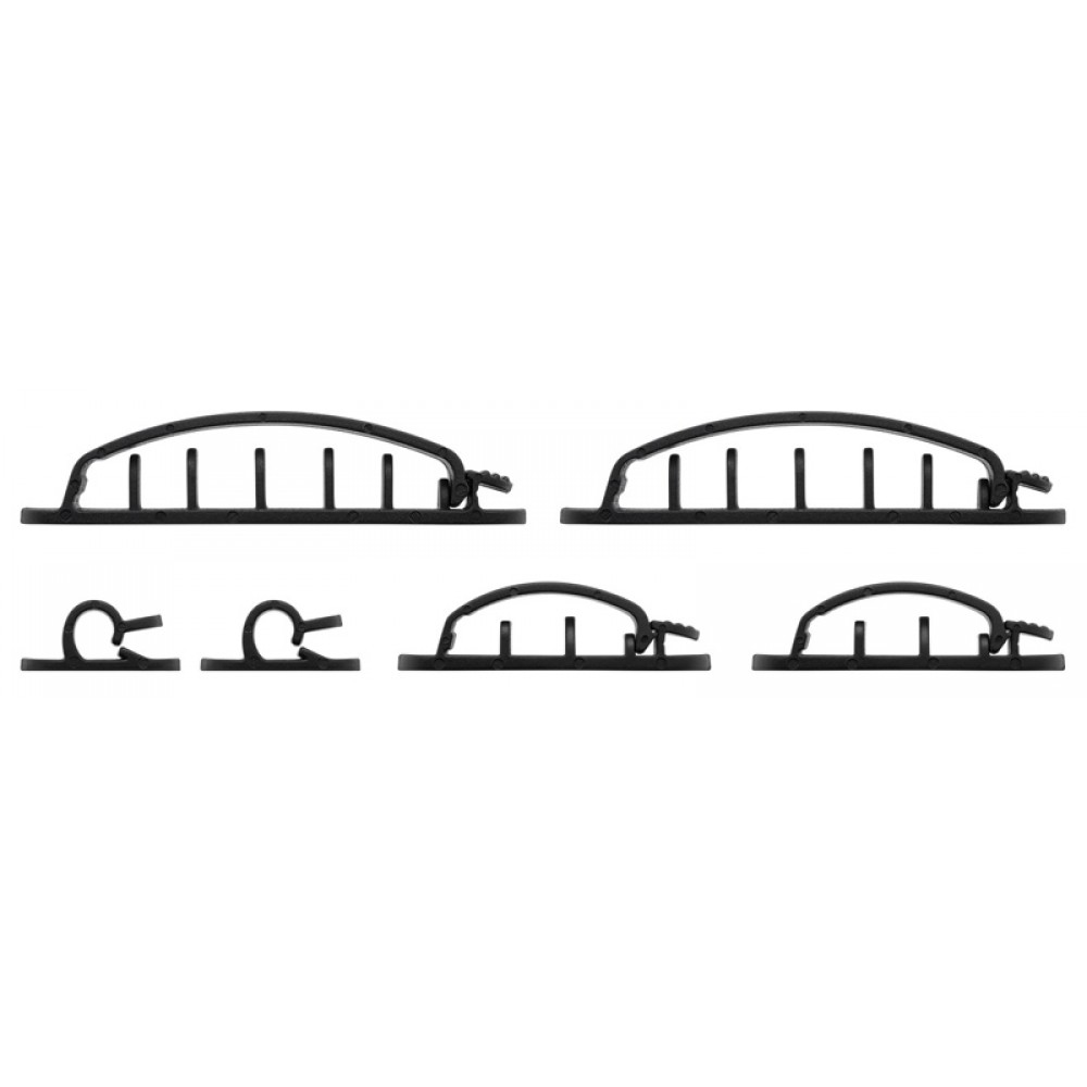 Το σετ περιλαμβάνει 2 οργανωτές καλωδίων 1 θέσης (μέγιστη διάμετρος 7.5mm), 2 οργανωτές καλωδίων 3 θέσεων (μέγιστη διάμετρος 10.3mm) και 2 οργανωτές καλωδίων 6 θέσεων (μέγιστη διάμετρος 10.8mm).