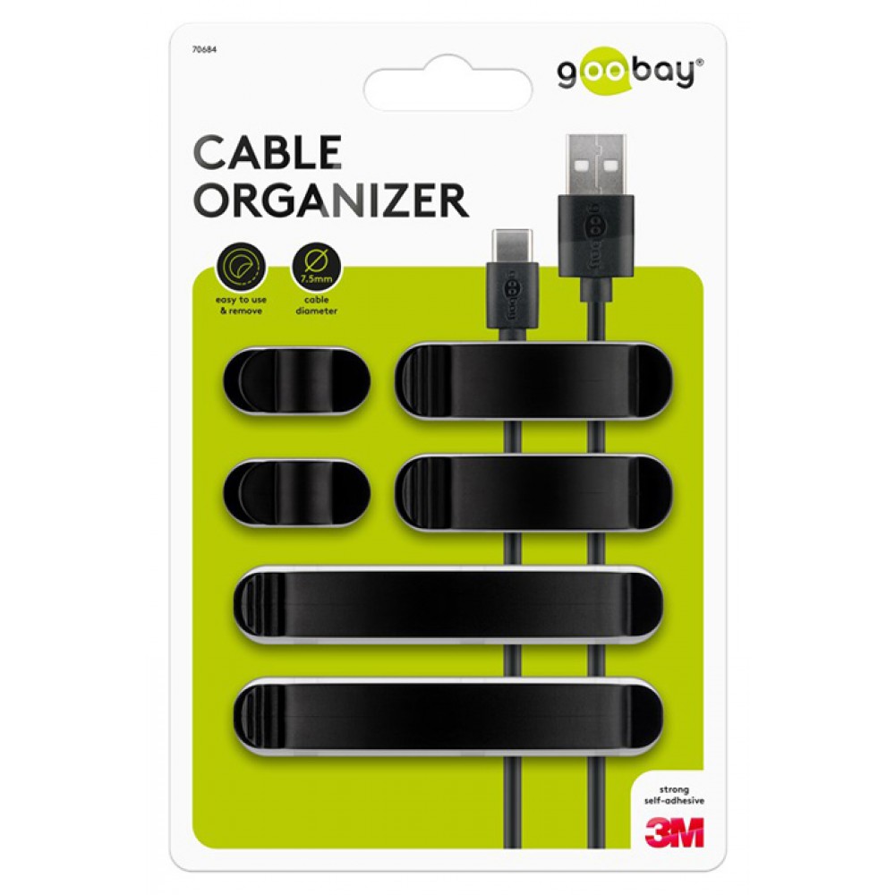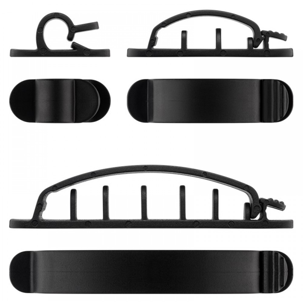 Σετ οργανωτές καλωδίων, κατάλληλοι για την εύκολη τακτοποίηση καλωδίων όπως USB ή τροφοδοσίας. Η επικόλληση τους μπορεί να γίνει σε ξύλινη, πέτρινη, γυάλινη, πλαστική και μεταλλική επιφάνεια με αυτοκόλλητο 3M, το οποίο δεν αφήνει υπολείμματα όταν αφαιρεθεί.