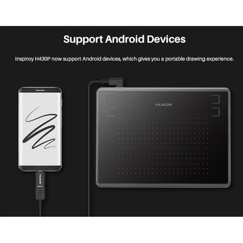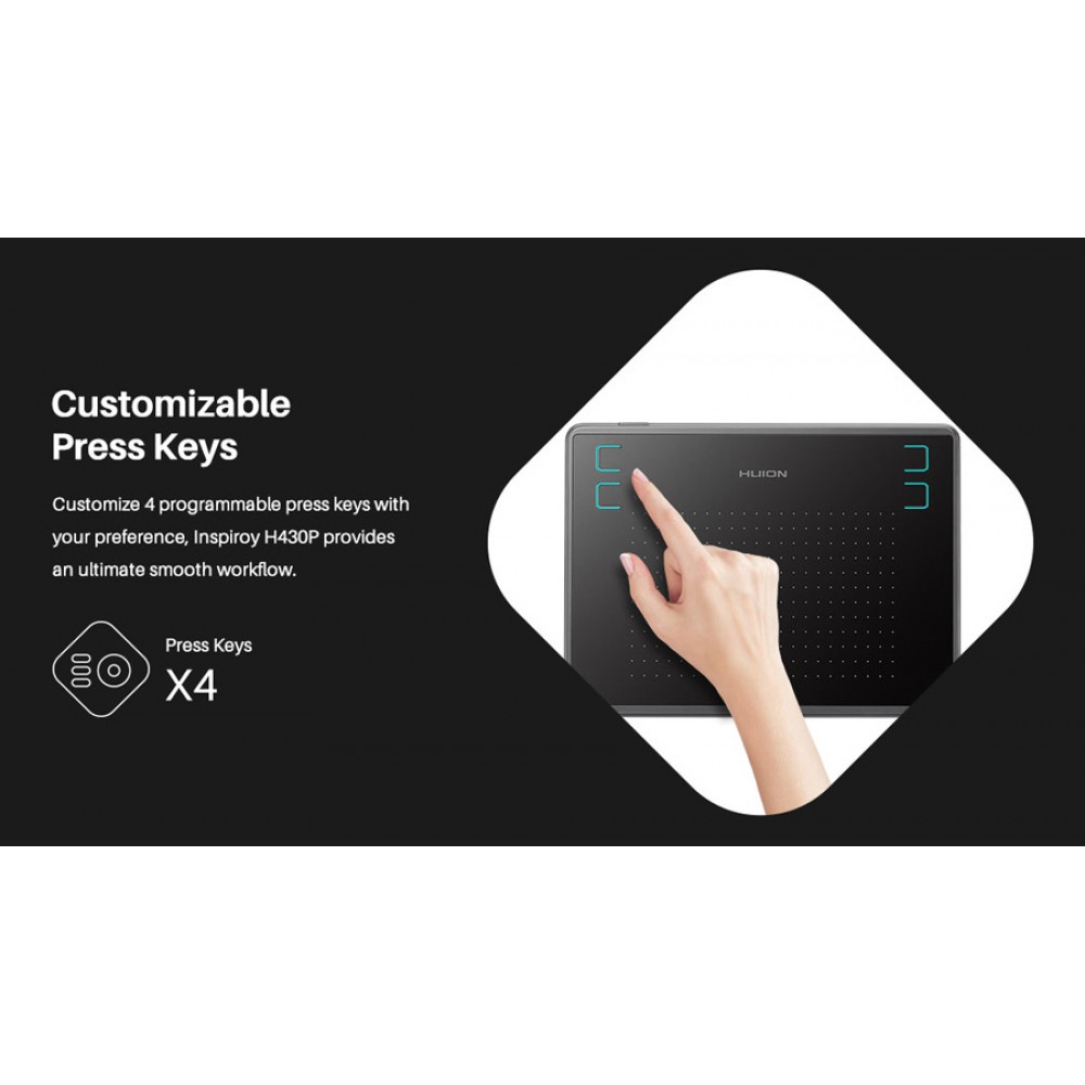 HUION pen tablet H430P, 4.8 x 3", battery-free pen, 4 πλήκτρα, μαύρο