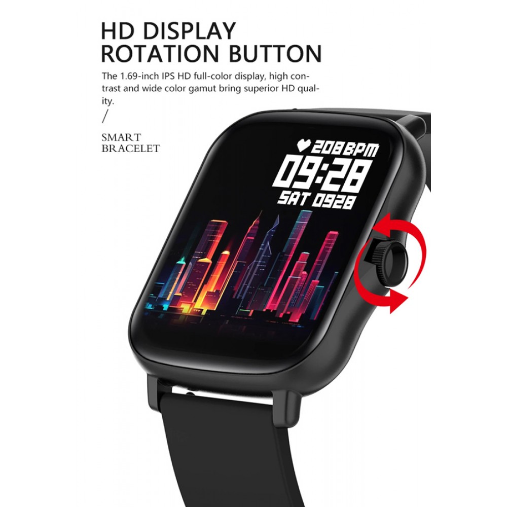 ΙΝΤΙΜΕ smartwatch P8 Plus 1.69" έγχρωμο IP67, HR & Blood pressure, μαύρο