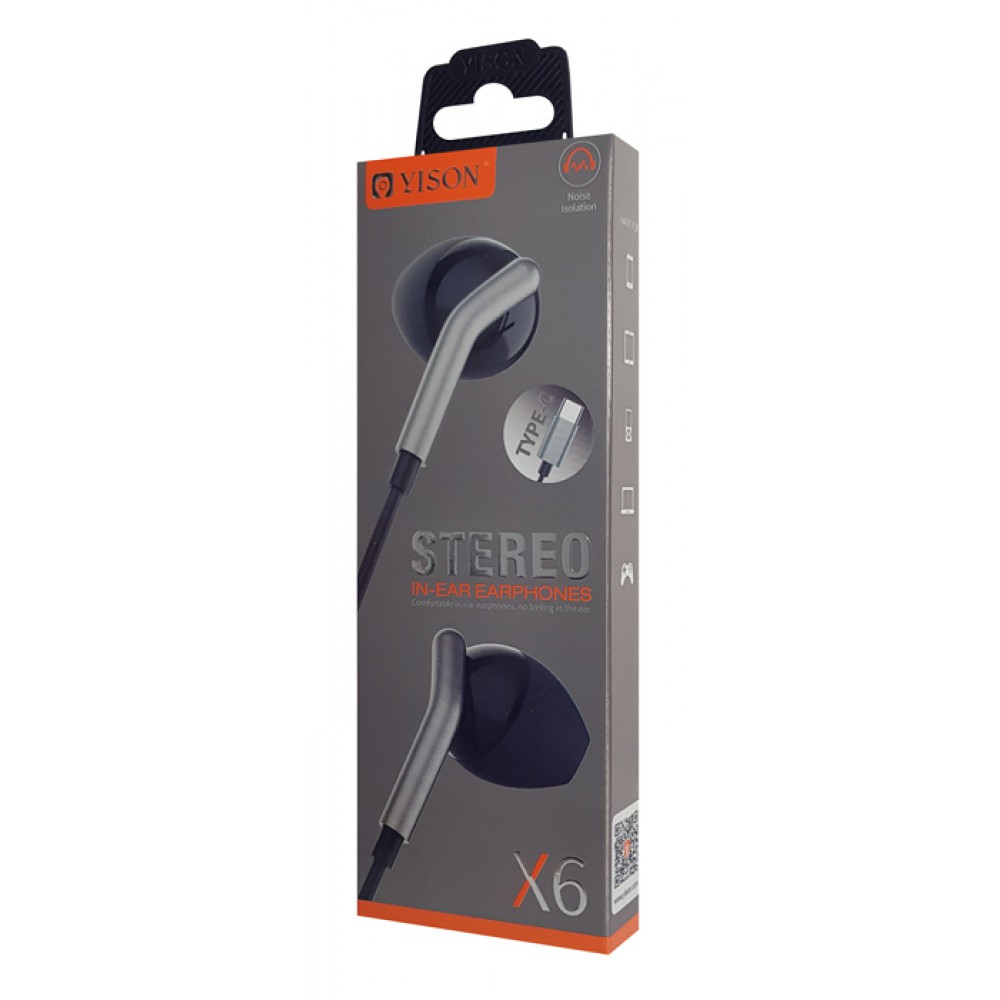 YISON earphones με μικρόφωνο X6, Type-C, 1.2m, μαύρα