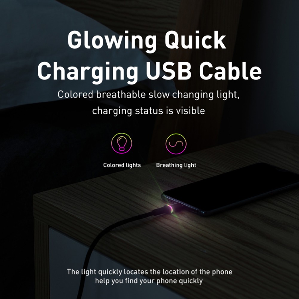 USB Type-C καλώδιο φόρτισης 5A/40W της Baseus με χρήσιμο, LED φως, για βολικότερη χρήση κατά την διάρκεια της νύχτας.
