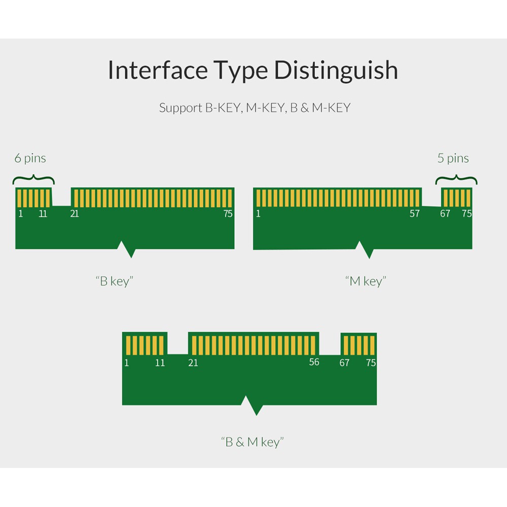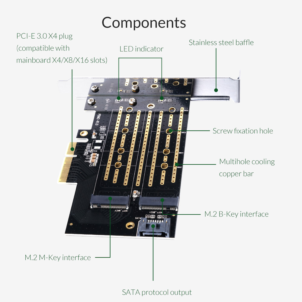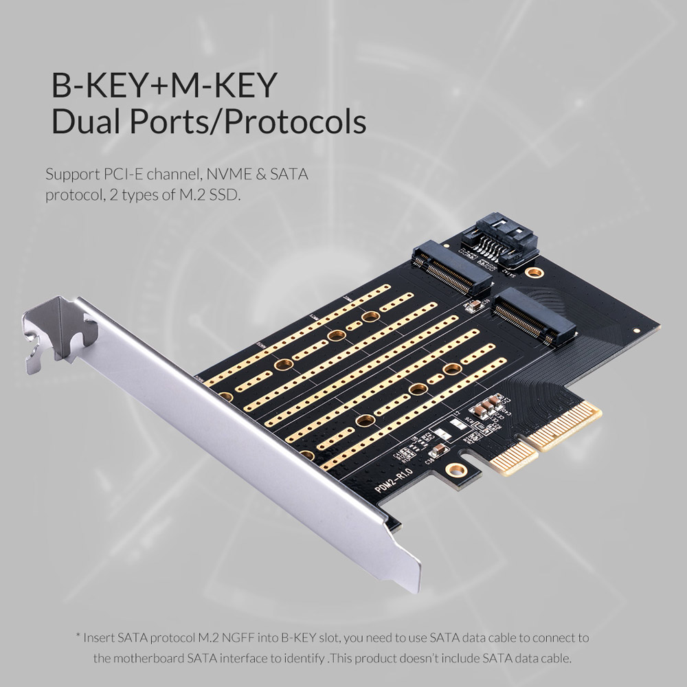 Supported SSD: 2230/2242/2260/2280, PCI-E Channel NVMe/SATA Protocol M.2 SSD