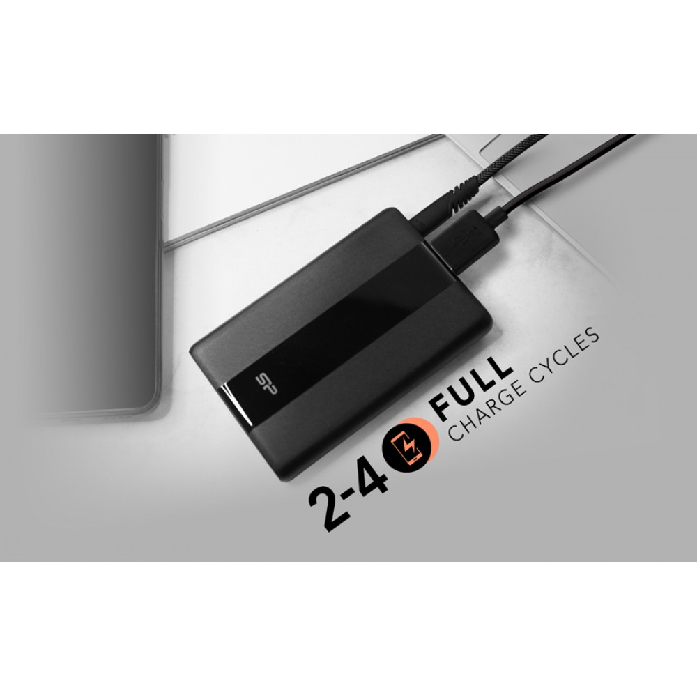 Με το power bank QP55 της Silicon Power το άγχος της εξαντλημένης μπαταρίας θα είναι παρελθόν. Η μπαταρία μεγάλης χωρητικότητας 10000mAh, είναι σε θέση να φορτίσει το smartphone σας ή όποια άλλη συμβατή συσκευή, 2-4 φορές με μια μόνο φόρτιση. Διαθέτει 1 θύρα εξόδου USB και 1 θύρα εξόδου/εισόδου USB Type-C (PD) με συνολική απόδοση έως 22.5W. Επιπλέον, εξοπλίζεται με ψηφιακή οθόνη LED για την ένδειξη της μπαταρίας και φορτίζει μέσω θύρας USB-C ή Lightning.