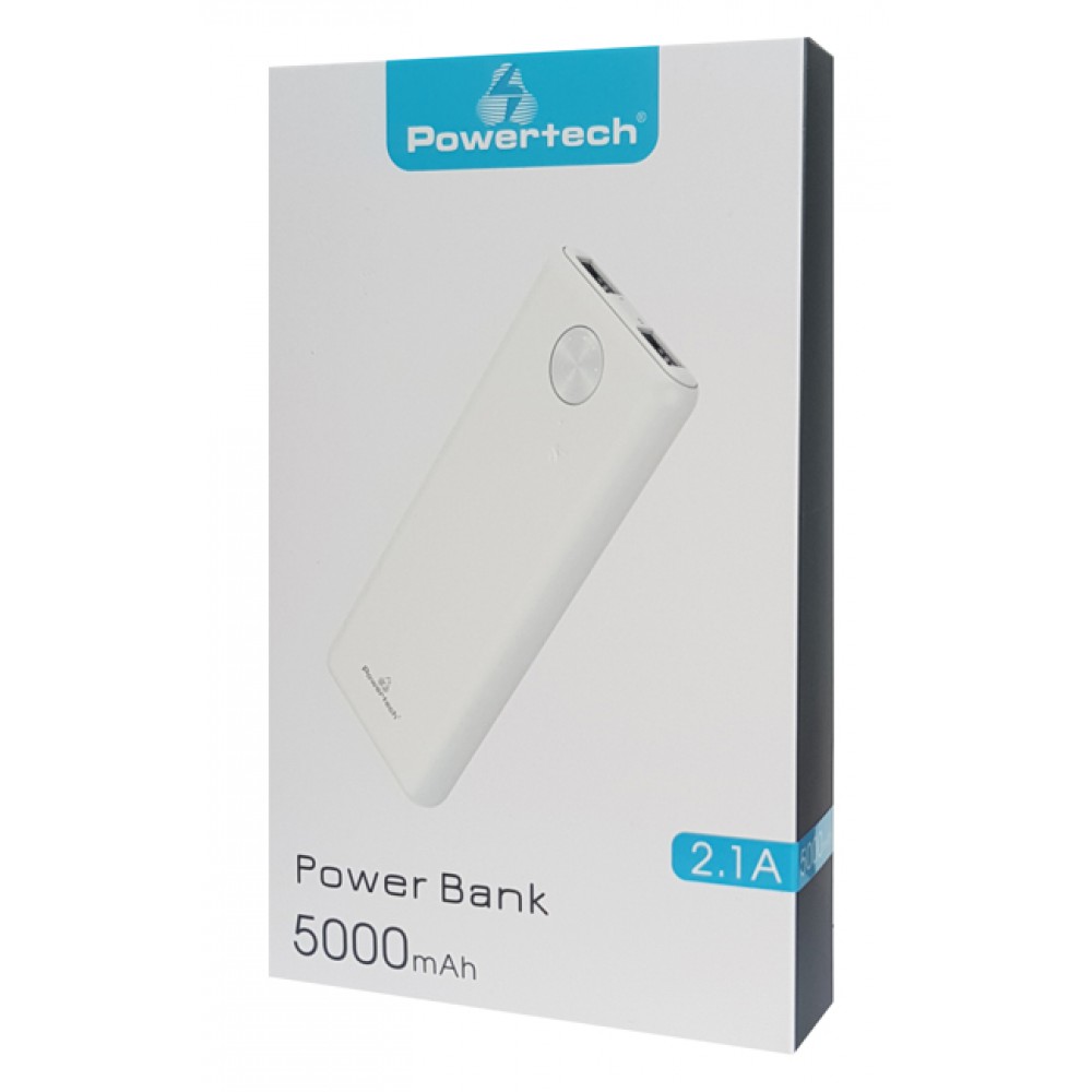POWERTECH Power Bank PT-803 5000mAh, 2x USB Output, 2.1A, λευκό