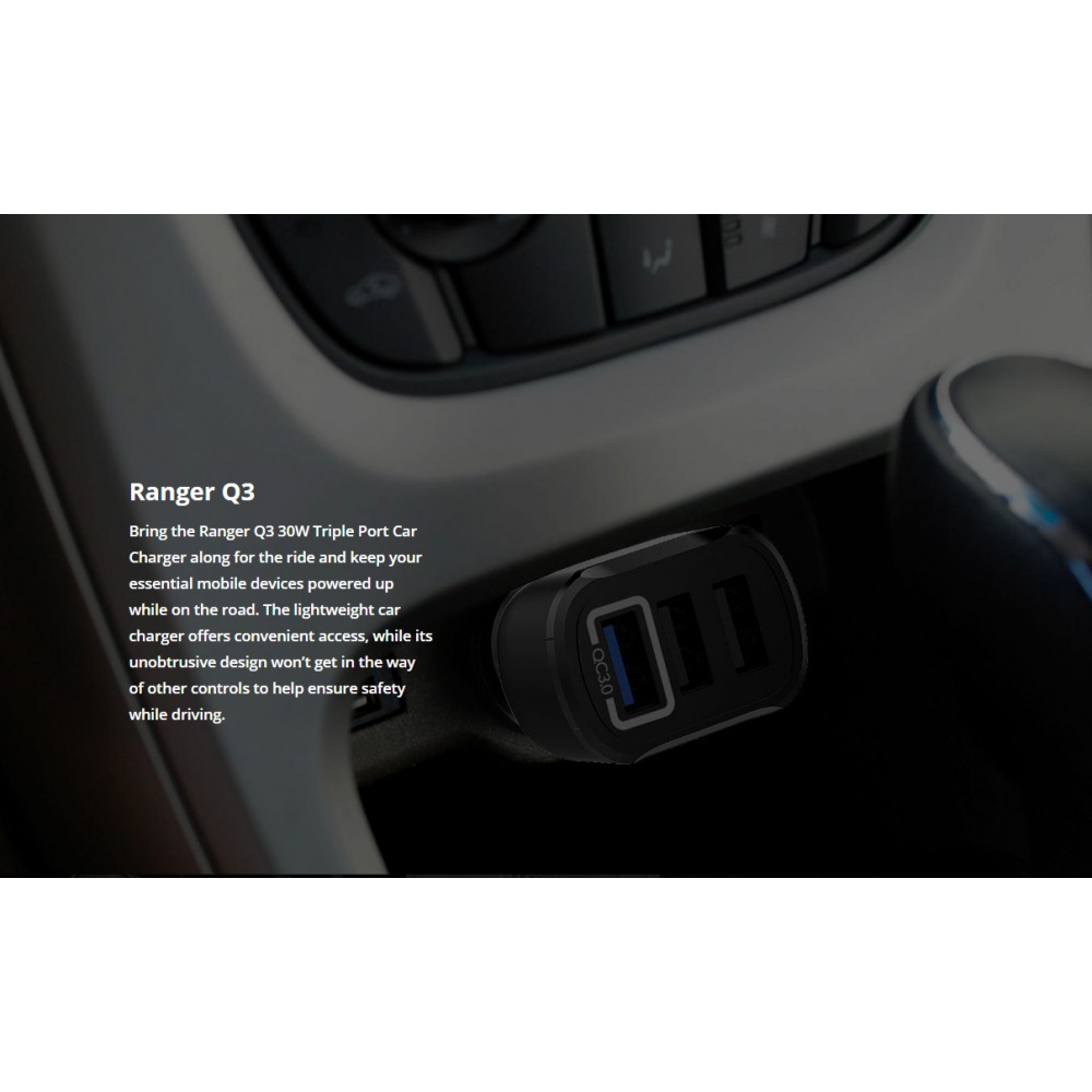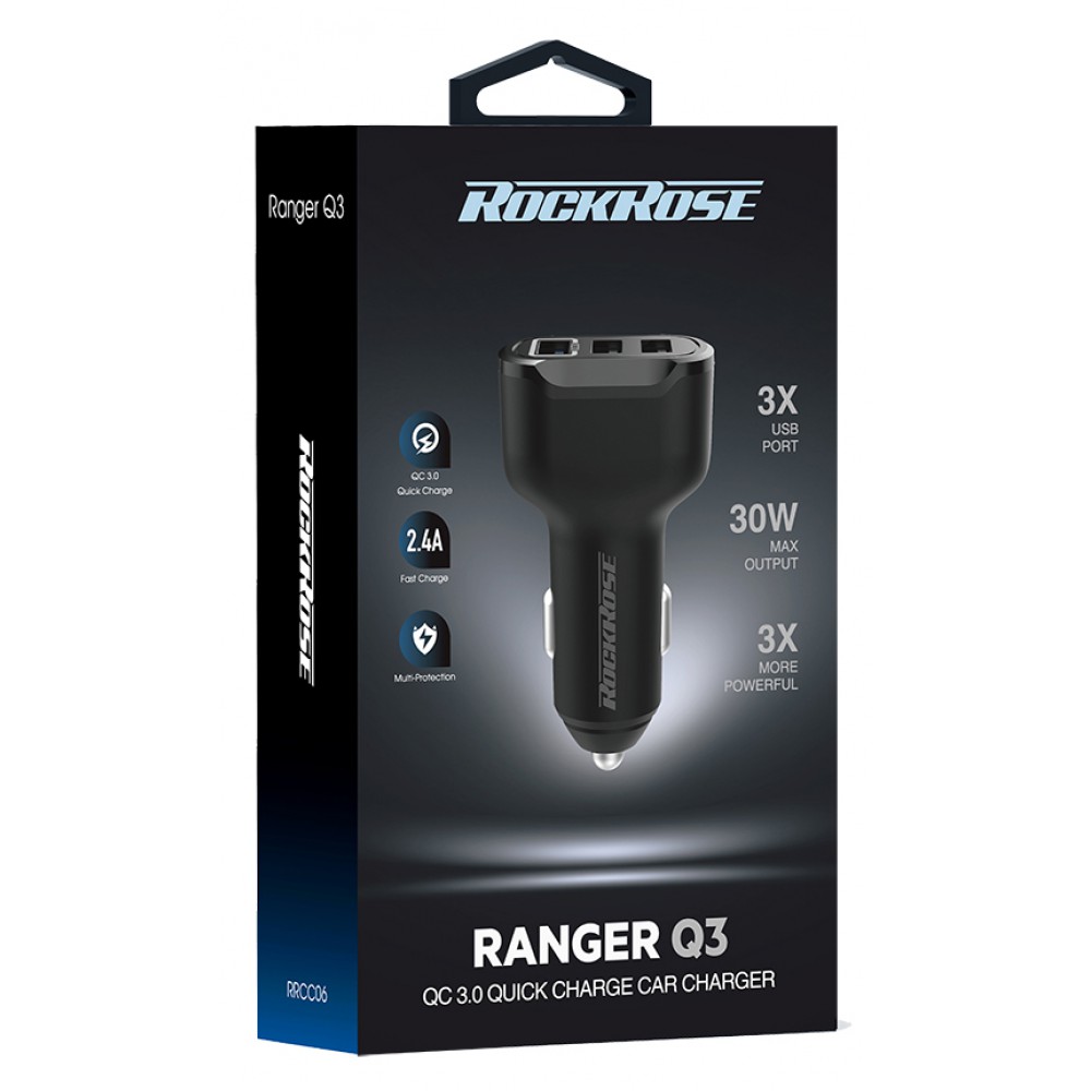 ROCKROSE φορτιστής αυτοκινήτου Ranger Q3, 3x USB, QC 30W, 3A, μαύρος