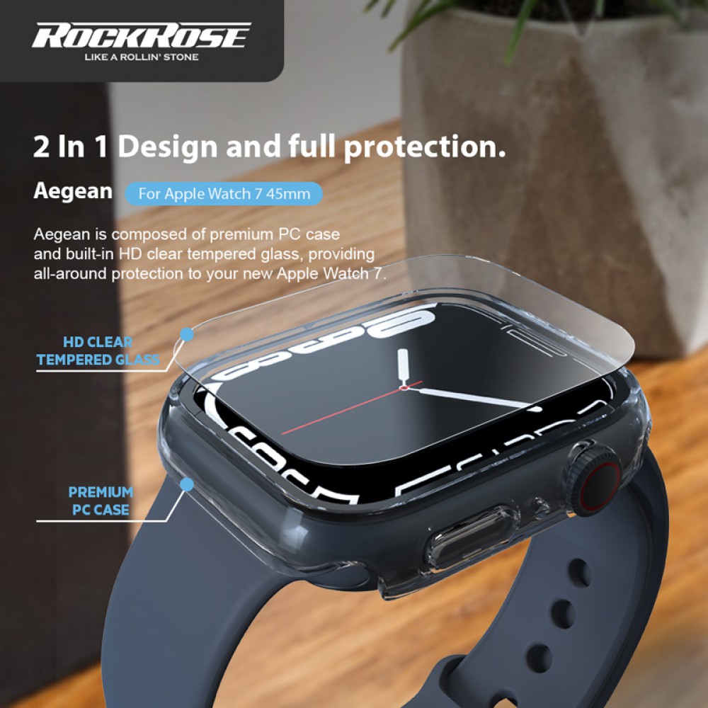 ROCKROSE θήκη & tempered glass Aegean για Apple Watch 7, 45mm, διάφανη