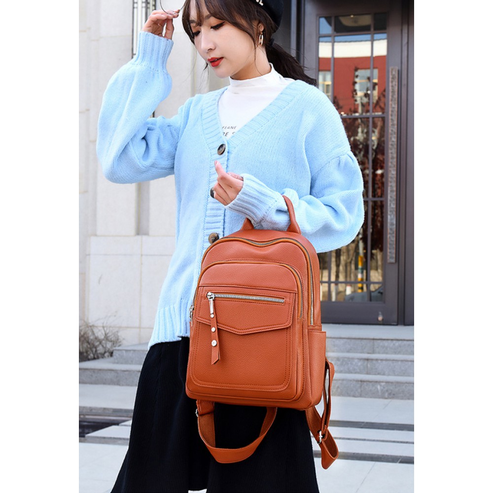Τσάντα πλάτης με μοντέρνο design, σε καφέ χρώμα, ιδανική για όλες τις ώρες της ημέρας. Διαθέτει πολλές εσωτερικές και εξωτερικές τσέπες, για να τοποθετήσετε χρήσιμα αντικείμενα.