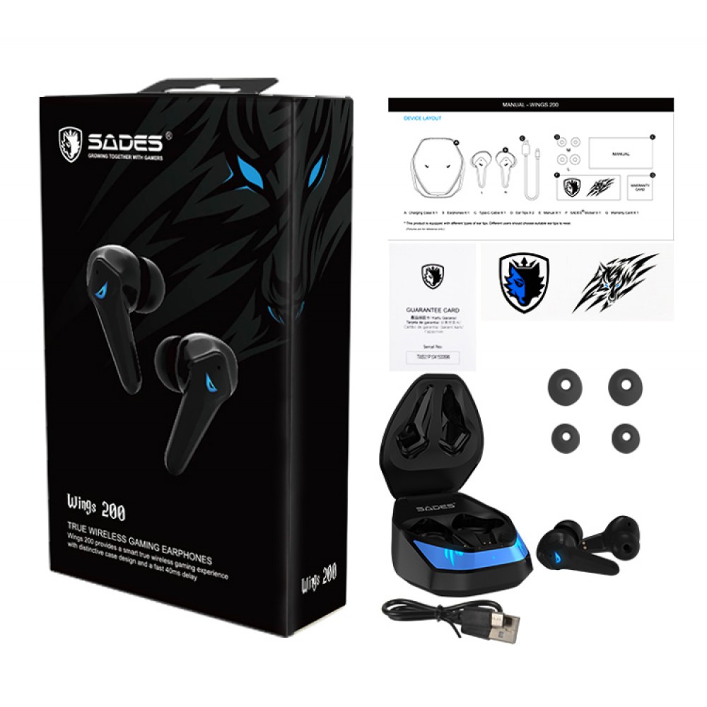 SADES gaming earphones Wings 200 με θήκη φόρτισης, True Wireless, μαύρα