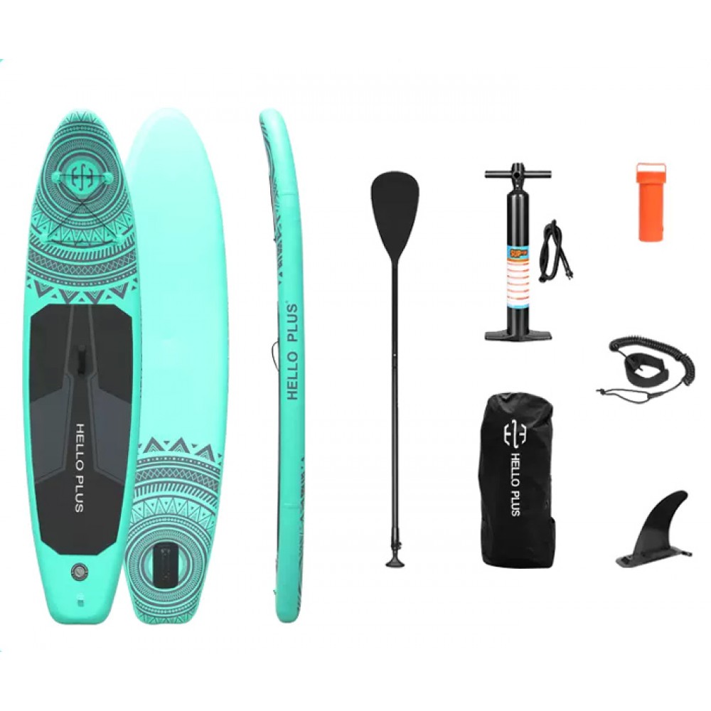 Στην συσκευασία συμπεριλαμβάνεται κουπί, αποσπώμενο πτερύγιο, λουρί αστράγαλου, τρόμπα χειρός, κιτ επιδιόρθωσης και σάκος για την εύκολη μεταφορά της σανίδας.