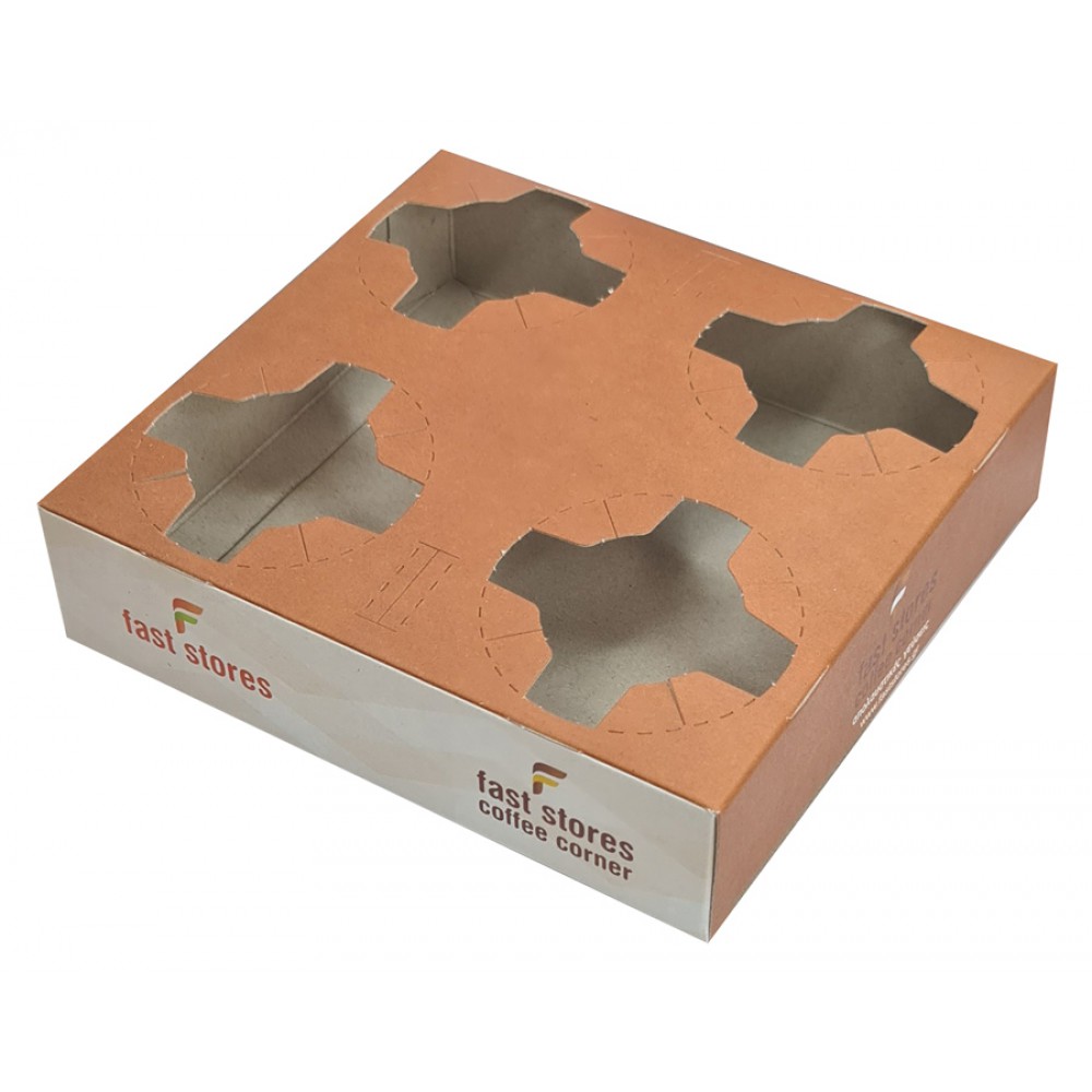 FAST STORES & COFFEE CORNER χάρτινη ποτηροθήκη, 4 θέσεων, 50τμχ