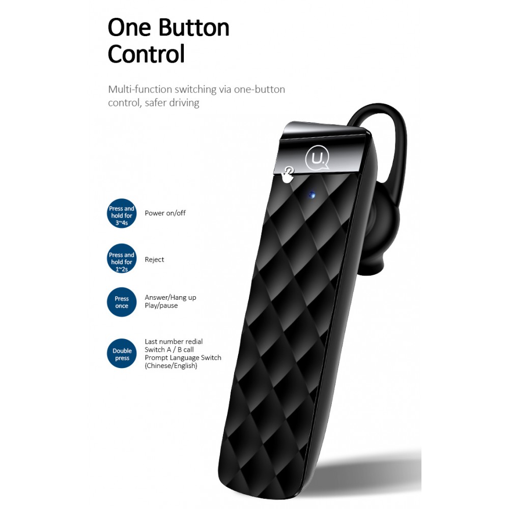 Με κορυφαία ποιότητα ήχου, τεχνολογία μείωσης θορύβου και άριστη εφαρμογή στο αυτί, το Bluetooth earphone της Usams σας επιτρέπει να ακούτε την αγαπημένη σας μουσική ή να πραγματοποιείτε hands-free τηλεφωνικές κλήσεις, από όπου και αν βρίσκεστε.