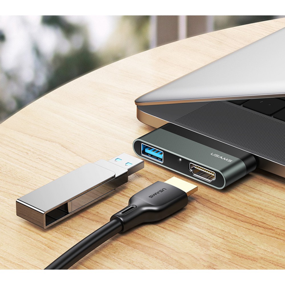 USAMS docking station SJ462, 1x USB, 1x HDMI, 4K, γκρι